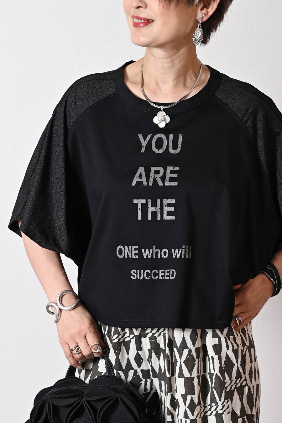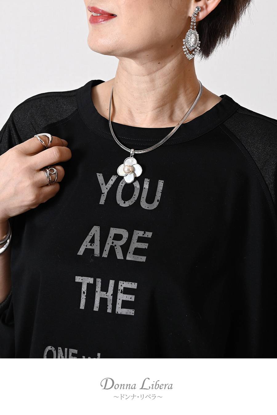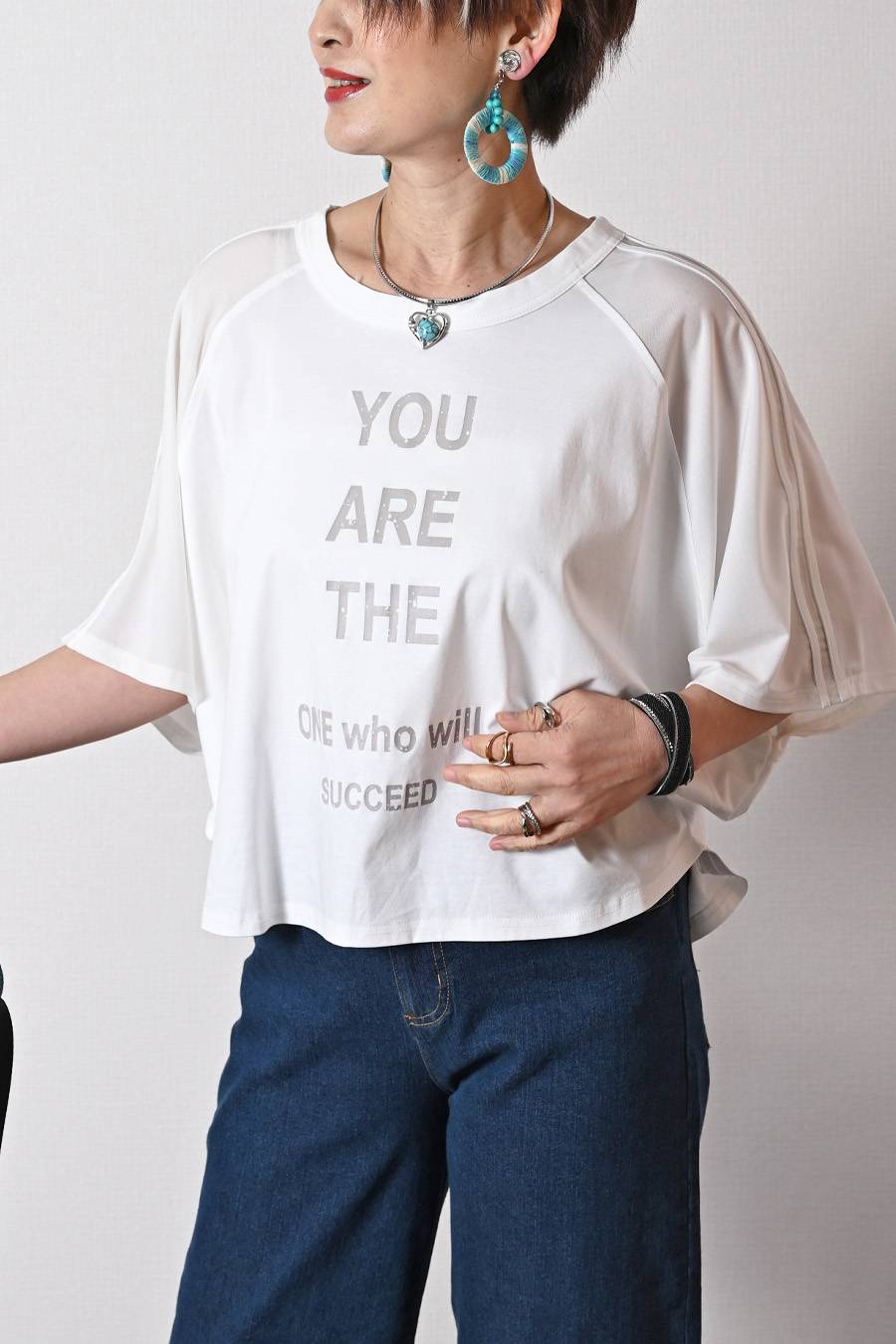 汗染み対策にも!シアー切替 ロゴプリント・ドルマンプルオーバー