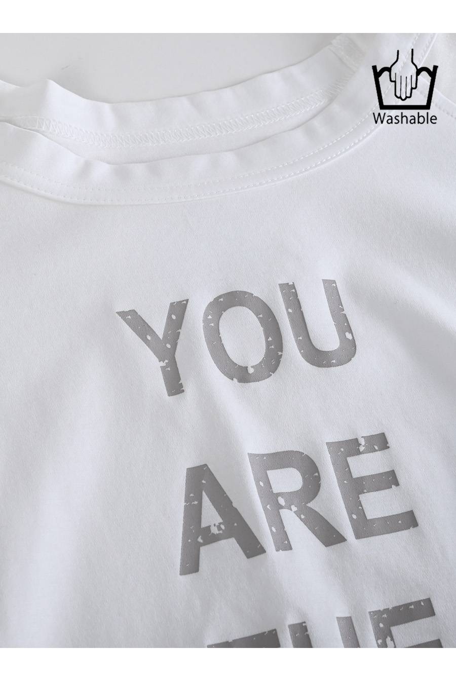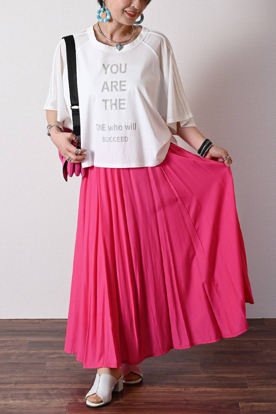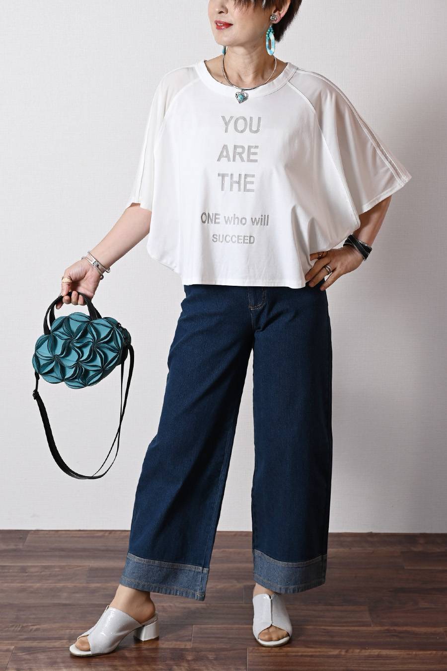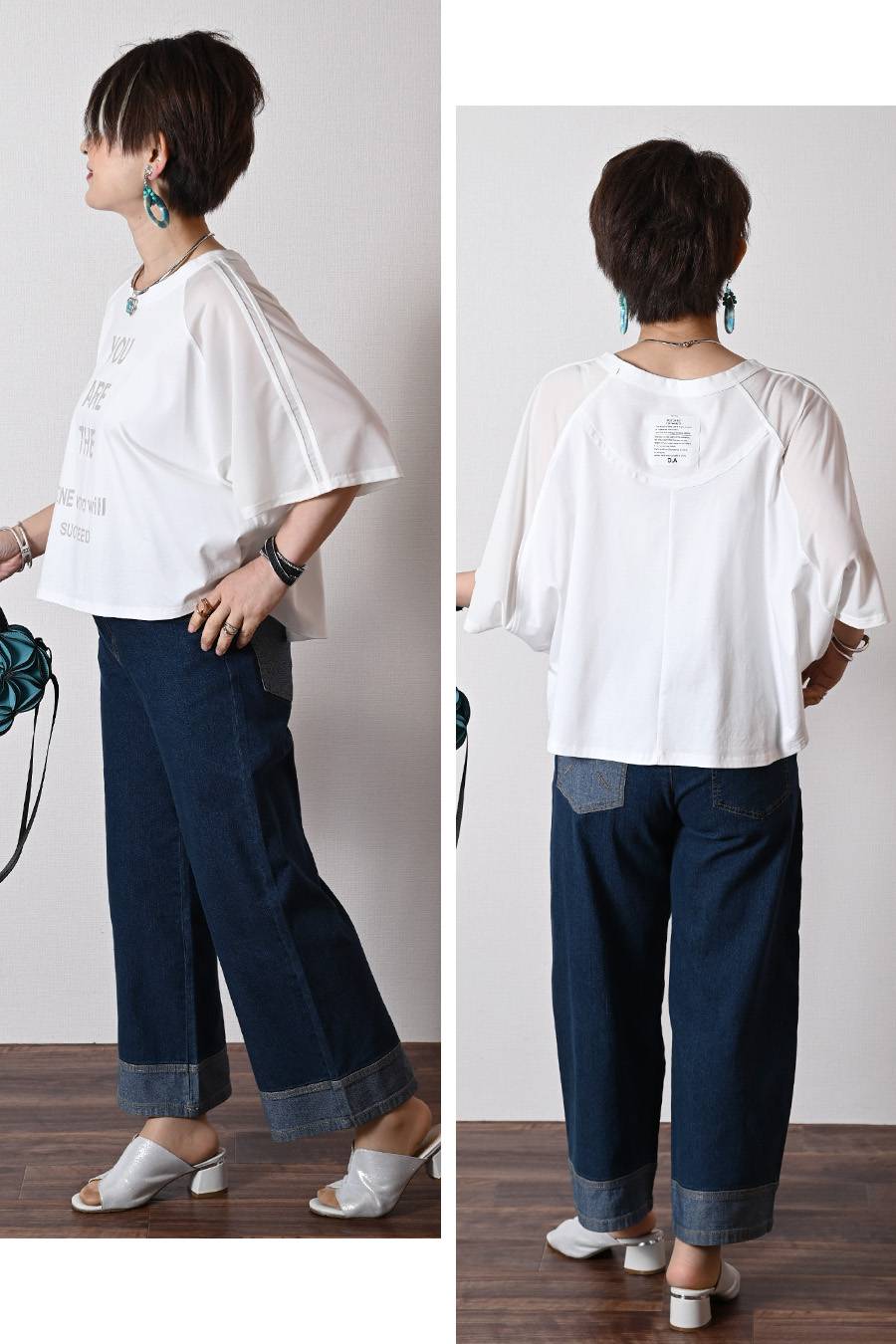 汗染み対策にも!シアー切替 ロゴプリント・ドルマンプルオーバー
