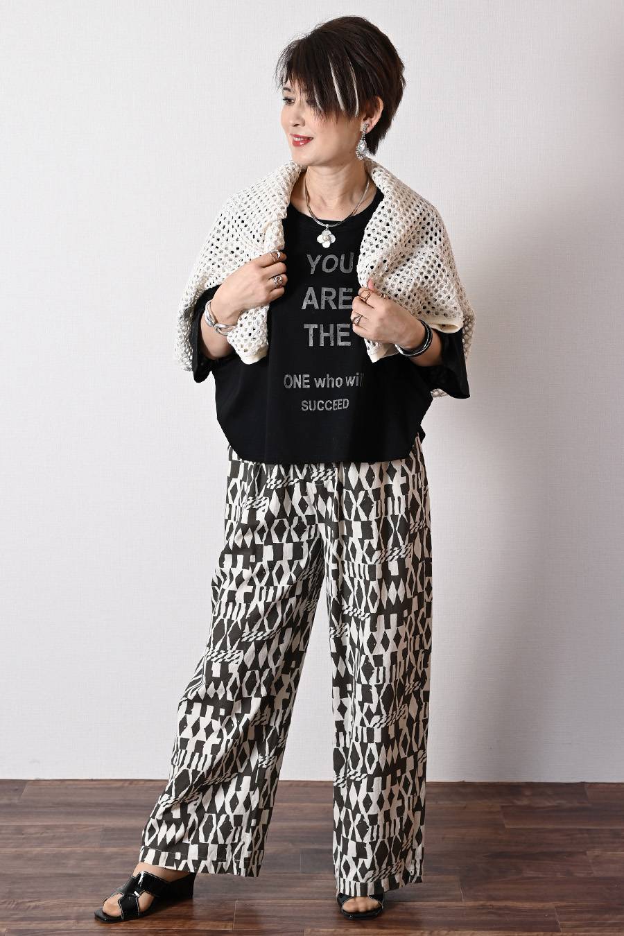 【プラス1,000円でメッシュニット(8,316円)をプレゼント!】ジオメトリックプルオーバー +ワイドパンツ+メッシュプルオーバー3点セットコーデ(定価¥36,740相当が5.5割引に)