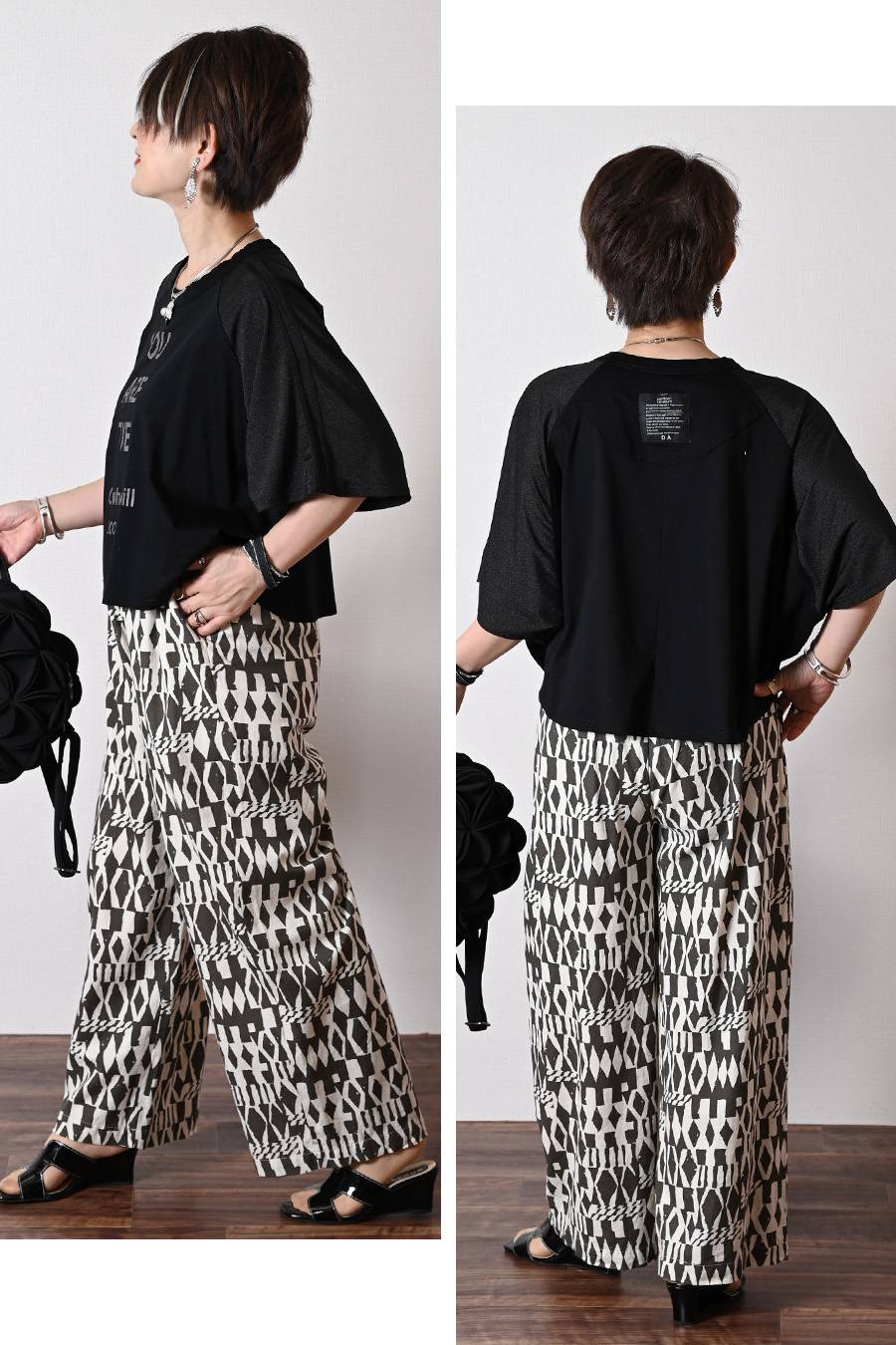 ジオメトリック・プリントプルオーバー +ワイドパンツ2点セットアップ
