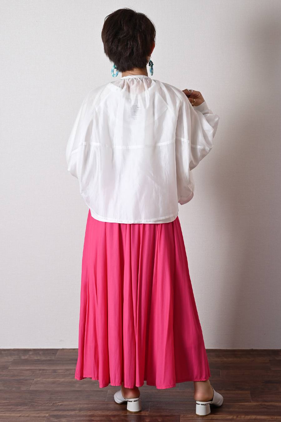 腕周りを美しくカバーする、ゆったりとしたドルマンシルエット。動きに合わせて生まれるドレープが、リラックス感とエレガンスを両立させます。